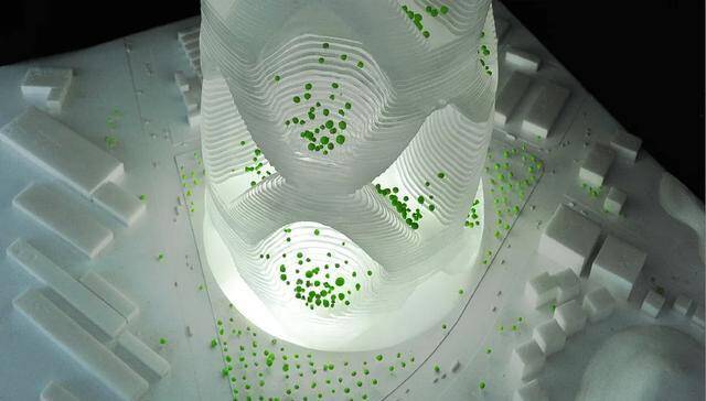 一般的设计师,大概会建一座高耸入云的长方体,顶部加天线或球形装置,在立面上做一些变化。但丹麦人脑回路清奇,抛弃“大楼”思维,以“立体城市”塑造这个概念方案。